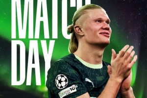 曼城官方社媒曬出為此役制作的海報,哈蘭德出鏡,背景為北極光下的阿斯普米拉體育場。