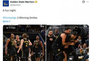 勇士官推隨后曬出該場(chǎng)比賽的照片,并配文道:“一個(gè)有趣的夜晚。@invisalign,勝利的微笑?!?/p>