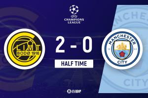 半場-曼城0-2博德閃耀 阿萊恩被斷送禮 霍格2分鐘雙響布隆伯格2助