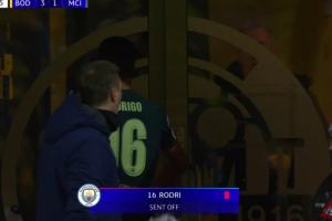 體育資訊01月21日訊 歐冠聯(lián)賽階段第7輪,曼城客戰(zhàn)博德閃耀。61分鐘,羅德里1分鐘連吃2黃,被罰下。