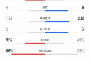 預(yù)期進(jìn)球——1.33比2.12
