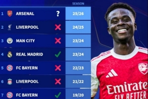 德轉(zhuǎn)也盤點(diǎn)了此前9支賽季前7場(chǎng)歐冠全勝的球隊(duì)最終戰(zhàn)績(jī),其中僅23/24賽季的皇馬、19/20賽季的拜仁最終奪冠,其余包括利物浦、曼城、巴薩、米蘭等球隊(duì)最終均無緣冠軍。