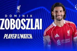 此役索博斯洛伊為利物浦踢滿全場,任意球直接破門,當選歐冠官方本場比賽最佳球員。