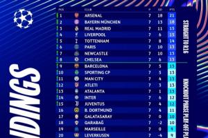 目前歐冠前二名阿森納和拜仁確定了直通16強(qiáng)名額,但有且僅有他們兩隊(duì)。從第3的皇馬往后數(shù),有10多支球隊(duì)將競(jìng)爭(zhēng)直通淘汰賽的名額,其中第6巴黎到第13亞特蘭大均為13分,8隊(duì)同分競(jìng)爭(zhēng)難度可想而知。