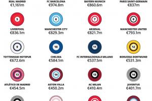 拜仁慕尼黑(8.61億歐元)位列前三,由于參加2025年國際足聯(lián)俱樂部世界杯帶來的轉播收入增加,其排名較去年上升兩位。