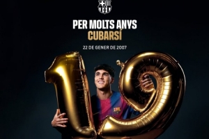 體育資訊1月22日訊 今天是巴薩中衛(wèi)庫(kù)巴西的19歲生日,巴薩官方為其送上祝福。