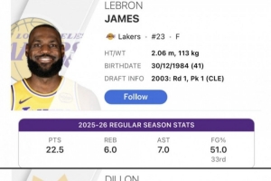 對此,美媒Basketball Forever曬出了本賽季詹姆斯和狄龍的年齡、數(shù)據(jù)對比,
