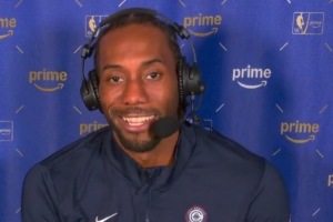 賽后,倫納德在視頻連線采訪中談到了他的出場時間限制,他說:“我知道我有時間限制,比賽還剩3分鐘的時候,我一直在想,怎么還不讓我上?”說完還笑了一下。