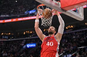 全場(chǎng)比賽,祖巴茨出戰(zhàn)32分鐘,13投7,罰球4中4,砍下18分19籃板,其中10個(gè)進(jìn)攻籃板,還有1個(gè)搶斷進(jìn)賬,正負(fù)值+19。
