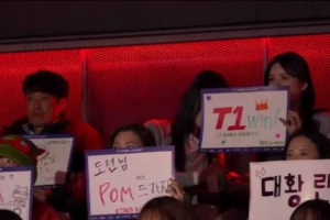 體育資訊1月23日訊 T1對(duì)陣KT現(xiàn)場(chǎng):peyz爸爸和姐姐觀賽 并為T1加油。