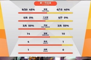 第一節(jié),青島進(jìn)攻乏力,全隊(duì)15投6中,命中率40%,三分7中0,罰球6中3,命中率也只有50%。