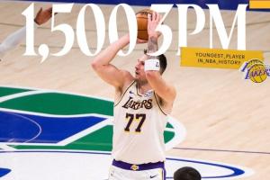 到目前為止,東契奇(26歲331天)已經(jīng)投進(jìn)兩記三分,常規(guī)賽生涯三分命中數(shù)突破1500,歷史最年輕(此前為塔圖姆、26歲362天)。