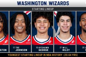 奇才首發(fā):卡林頓(20歲188天)、特雷·約翰遜(19歲324天)、凱肖恩·喬治(22歲44天)、威爾·萊利(19歲349天)、薩爾(20歲274天)