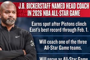 就此,活塞主帥比克斯塔夫?qū)⒋_認(rèn)獲得全明星主帥資格,他將執(zhí)教美國VS世界的三支球隊(duì)之一。