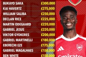 體育資訊01月11日訊 多方報(bào)道稱阿森納與薩卡敲定新合約,他將在阿森納拿到30萬鎊的隊(duì)內(nèi)頂薪,《太陽報(bào)》羅列了阿森納隊(duì)內(nèi)的最新周薪排名。