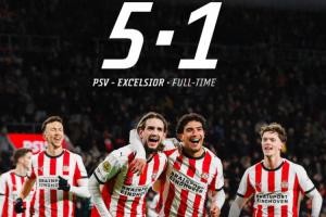 體育資訊01月11日訊 荷甲第18輪,埃因霍溫5-1大勝SBV精英,在荷甲聯(lián)賽豪取12連勝。