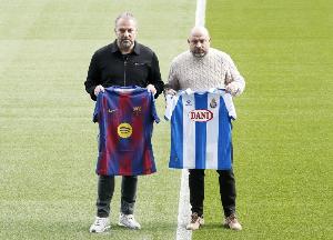 在與阿隆索拍完傳統(tǒng)的教練合影后,弗里克本周六在吉達單獨亮相,在超級杯獎杯旁邊拿著一件巴薩球衣。