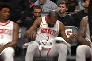 這也有Buff~杜蘭特摔水杯后火箭8勝4負 只輸給馬刺雷霆國王76人