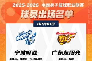 體育資訊2月1日訊 19:35寧波將在主場(chǎng)迎戰(zhàn)廣東,賽前大名單出爐。