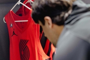 今天的比賽,阿夫迪亞也將穿上帶有全明星特別補(bǔ)丁的球衣比賽。賽前,阿夫迪亞也仔細(xì)看著這件特別的球衣。