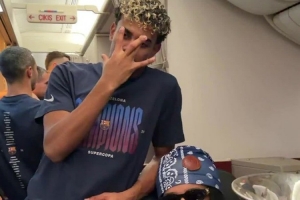 巴薩官方更新社媒動(dòng)態(tài),曬出亞馬爾等球員在飛機(jī)內(nèi)與獎(jiǎng)杯合影的視頻和照片,慶祝球隊(duì)奪冠。