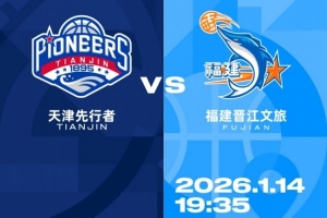 1月14日,2025-2026賽季CBA常規(guī)賽第15輪,天津先行者迎戰(zhàn)福建晉江文旅,本場次為CBA潛力賽場次,天津5、抖音平臺將同步直播本場比賽。先行者攜客場勝利回歸主場,再度對陣福建晉江文旅。期待球隊延續(xù)良好狀態(tài)與比賽氣勢,依托主場優(yōu)勢,在球迷的熱情助威中全力爭勝,捍衛(wèi)津門主場榮耀。