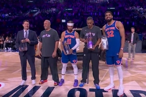 率先登場的卡梅隆隊在4分球點位連中3球,最終得分38分讓尼克斯隊壓力大增,后者臉色明顯有些驚慌。