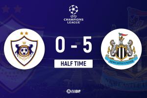 體育資訊2月19日訊 北京時間1:45,歐冠聯(lián)賽淘汰賽附加賽卡拉巴赫vs紐卡,上半場,戈登開場閃擊,隨后單刀破門+兩度點射上演大四喜!特里皮爾助攻佳夫破門!紐卡暫5-0領(lǐng)先卡拉巴赫!