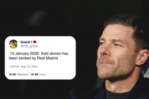 在去年5月12日——也就是羅馬諾用“Here We Go”宣布阿隆索將執(zhí)教皇馬的當(dāng)天,這位名叫Granit的球迷發(fā)帖預(yù)測(cè)道:“2026年1月13日,哈維·阿隆索被皇家馬德里解雇?!?/strong>