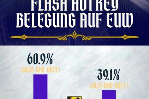 體育資訊2月19日訊?英雄聯(lián)盟官推近日公布了歐洲服務(wù)器的閃現(xiàn)按鍵統(tǒng)計(jì)數(shù)據(jù),結(jié)果顯示:60.9%的玩家選擇將閃現(xiàn)放在D鍵,勝率為50.0%;而39.1%的玩家堅(jiān)持F閃,勝率則為50.1%。