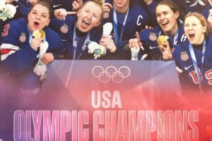 冬奧女子冰球決賽美國隊2-1加時絕殺加拿大隊,摘得金牌