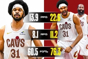 有哈登時,阿倫場均22.6分11.2籃板,投籃命中率76.3%,真實命中率76.8%。