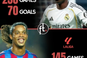 維尼修斯在西甲中已經(jīng)打進70球,追平了同胞羅納爾迪尼奧的進球數(shù)量。但是,巴薩傳奇要比他少用85場比賽。