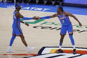 雷霆更新了球隊(duì)傷情,亞歷山大(腹部拉傷)、阿杰伊·米切爾(腹部拉傷/左腳踝扭傷)、杰倫·威廉姆斯(右腿筋拉傷)、卡魯索(腳踝扭傷)、托馬斯·索伯(前交叉韌帶撕裂)將全部缺席比賽。