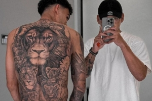 32歲的西班牙紋身師丹尼爾·斯通解釋說:“盧喬(迪亞斯的昵稱)在效力利物浦期間(2022年1月至2025年7月)找到我,因?yàn)樗吹搅宋覟樗那瓣?duì)友達(dá)爾文·努涅斯(26歲,現(xiàn)效力于利雅得新月)設(shè)計(jì)的紋身。他一直想紋一只和家人在一起的大獅子。我被要求設(shè)計(jì)一個象征迪亞斯想要保護(hù)家人的圖案。這只獅子也應(yīng)該體現(xiàn)他在球場內(nèi)外所展現(xiàn)出的力量和勇氣?!?/p>