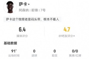 體育資訊2月23日訊 阿森納在本輪英超對(duì)陣熱刺,薩卡本場(chǎng)數(shù)據(jù)如下: