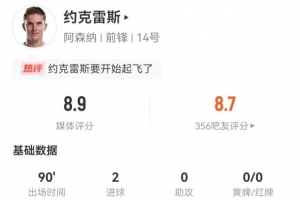 體育資訊2月23日訊 阿森納在本輪英超對陣熱刺,約克雷斯本場數(shù)據(jù)如下:
