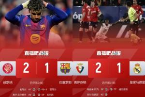 本輪西甲,皇馬在客場1-2遭奧薩蘇納絕殺,巴薩獲得機會實現(xiàn)超分。