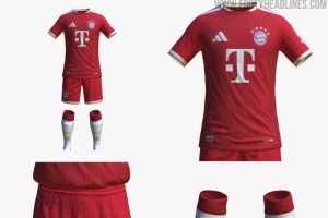 從媒體曬出的圖片來看,拜仁下賽季主場球衣以紅色為主色調(diào),搭配白色、金色細節(jié),球襪為白色并帶有紋路設(shè)計,與球衣的條紋相呼應(yīng)。