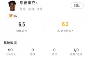 體育資訊2月23日訊 在北京時(shí)間今天凌晨結(jié)束的法甲比賽,里昂客場(chǎng)1-3不敵斯特拉斯堡,被皇馬外租至里昂的恩德里克本場(chǎng)比賽表現(xiàn)不佳,最終僅獲得了6.5分的評(píng)分。