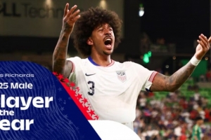 體育資訊1月15日訊 美國足協(xié)官方宣布,25歲的水晶宮中衛(wèi)理查茲當選為2025年美國足球先生。