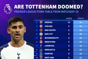 體育資訊2月23日訊 德國轉(zhuǎn)會市場統(tǒng)計了英超各隊第19輪比賽以來拿到的積分,并列出榜單,阿森納19分最多,熱刺4分墊底。