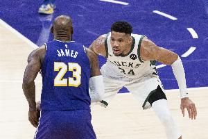 此役,字母哥出戰(zhàn)31分鐘11投9中,罰球4中3砍下21分6籃板5助攻2搶斷2蓋帽;詹姆斯上場(chǎng)33分鐘,21投10中得到26分9籃板10助攻3搶斷。