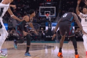 GIF-卡斯?fàn)栠B線文班內(nèi)線扣籃 馬刺開場11-2打?;钊?/p>