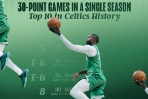 據(jù)統(tǒng)計(jì),這是他本賽季第28次得分30+,闖進(jìn)凱爾特人隊(duì)史單賽季30+場(chǎng)次前十,追平塔圖姆上賽季和2021-22賽季的紀(jì)錄。