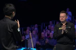 比賽進(jìn)行到最后一顆黑球時(shí),墨菲早早站起準(zhǔn)備為常冰玉鼓掌,握手后與全場觀眾一樣,長時(shí)間為常冰玉的精彩表現(xiàn)鼓掌!