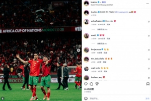 皇馬中場布拉欣·迪亞斯在本場比賽首發(fā)出戰(zhàn),他也在賽后通過社媒曬出和隊長阿什拉夫的合照,并配文:“晉級決賽!”