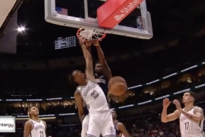 GIF-炸裂!錫安突然跳步雙手隔扣克拉克斯頓!
