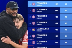 體育資訊1月15日訊 德轉(zhuǎn)統(tǒng)計(jì)表明,孔帕尼帶領(lǐng)拜仁上半賽季的成績(jī)創(chuàng)造了德甲歷史。