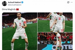 此役阿什拉夫?yàn)槟β甯缣邼M全場,幫助球隊(duì)取勝,賽后他在社交媒體上曬出比賽照片,配文:“永遠(yuǎn)的摩洛哥?!?/p>